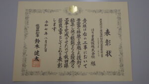秋田県知事より秋田県優良工事表彰受賞